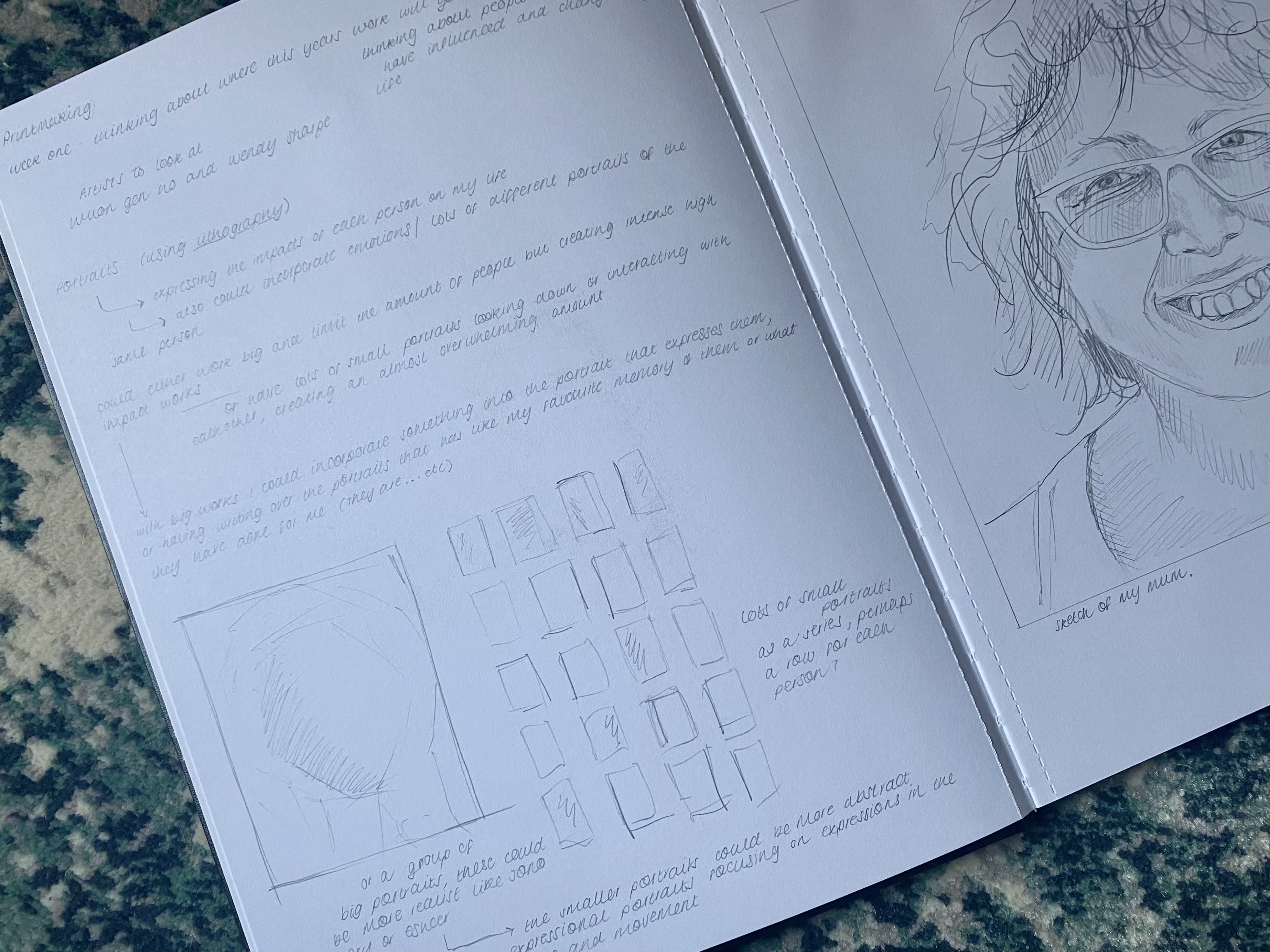 The first week back into the print studio and thus the first entry into this blog where I will be documenting my process and work this semester and next in the printmaking studios. As an introduction back we just talked about our plans moving forward with work this semester. My initial ideas and thoughts this semester is to draw portraits of people who have had a significant influence in my life, or been prevalent at important moments in my life. It is a project I have wanted to do for my final year exhibition as it collates everything I am passionate about. I still unsure at this stage on how to do the portraits whether they should stand alone or whether they should have a surrealist element.