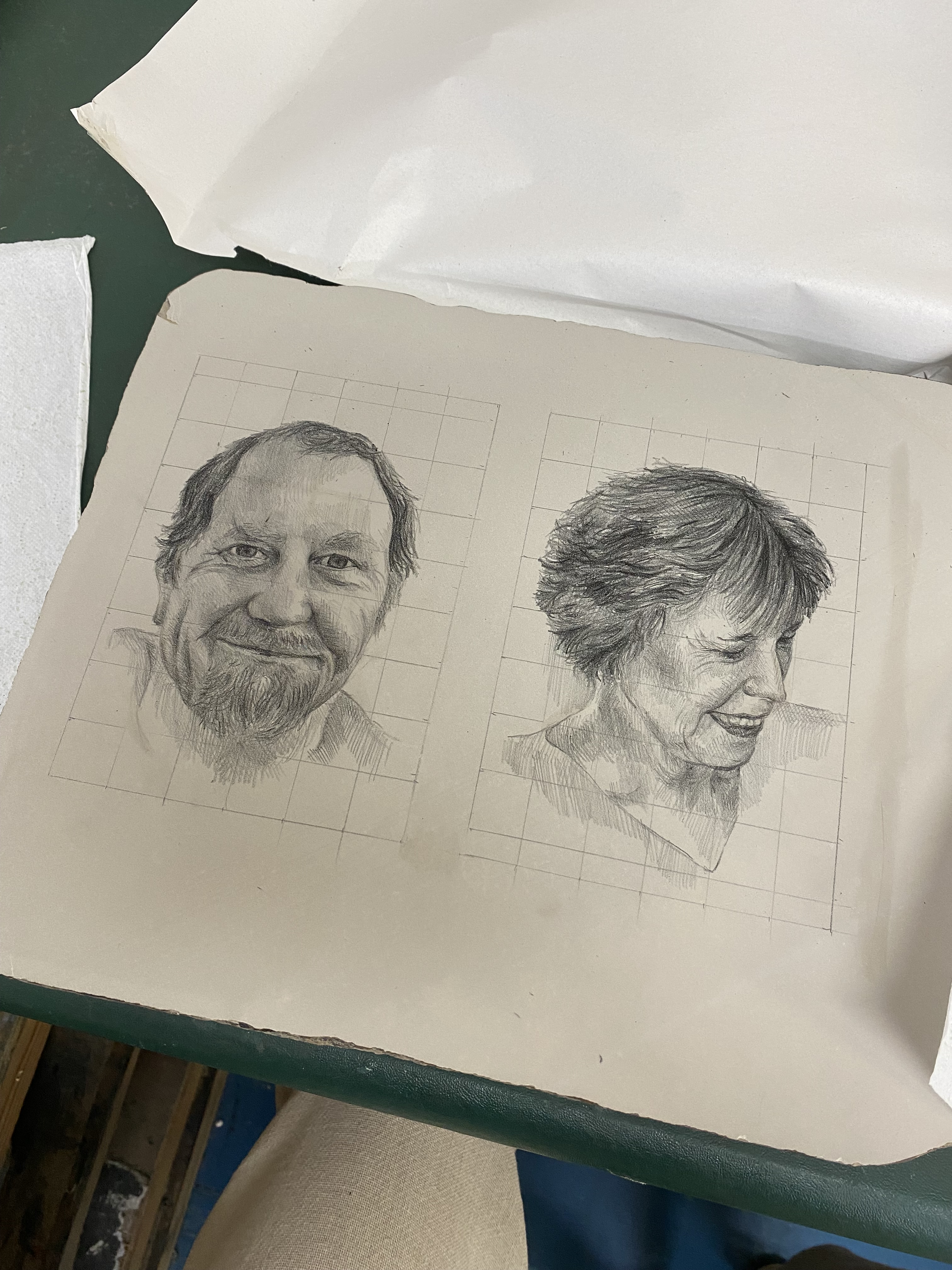This week I started working on two smaller portraits as I have decided to go along my central portraits I am going to have some smaller ones of my family, presented a bit like how nineteenth century family portraits would be like. I have decided that unlike the central portraits which I have decided to have the faces more composed as to let the expressional shapes around them explain their self. These additional ones I will include more expression and emotions as they are like small brief faces in a moment of time and will just stand alone as an exploration of identity through a generation of people who had an indirect influence on myself.