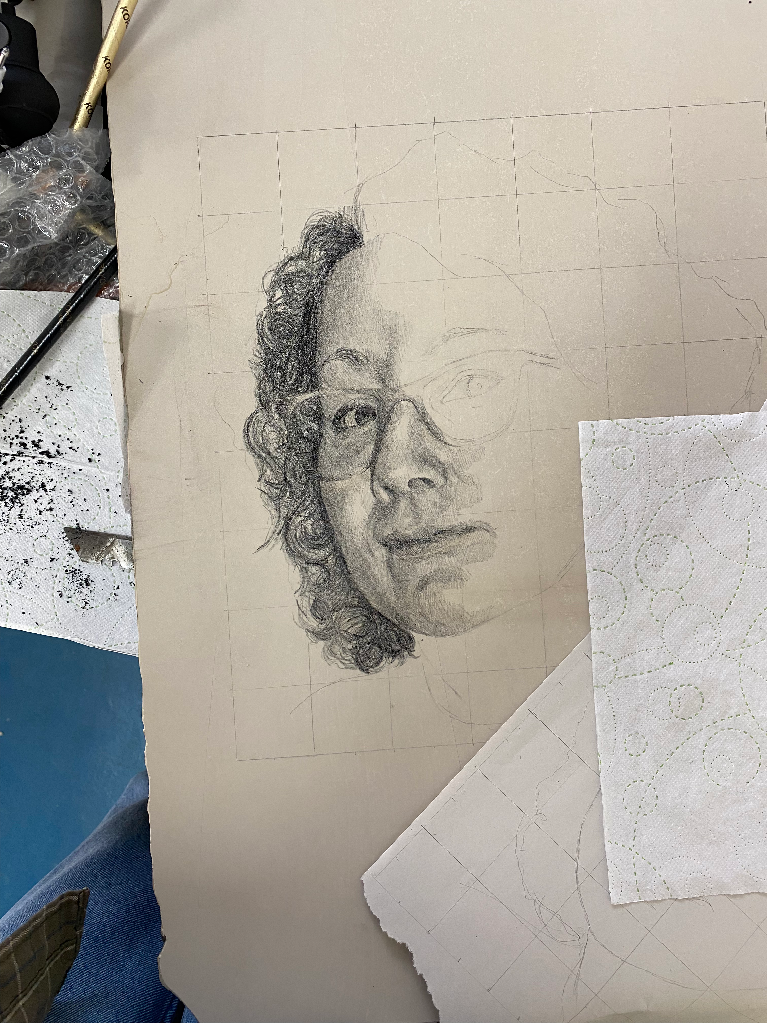Finally I started the first larger portrait for my exhibition, shown half way through drawing it above. This portrait is of my mum and will be one of the most central portraits to my exhibition, next week I hope to see this finished and printed.