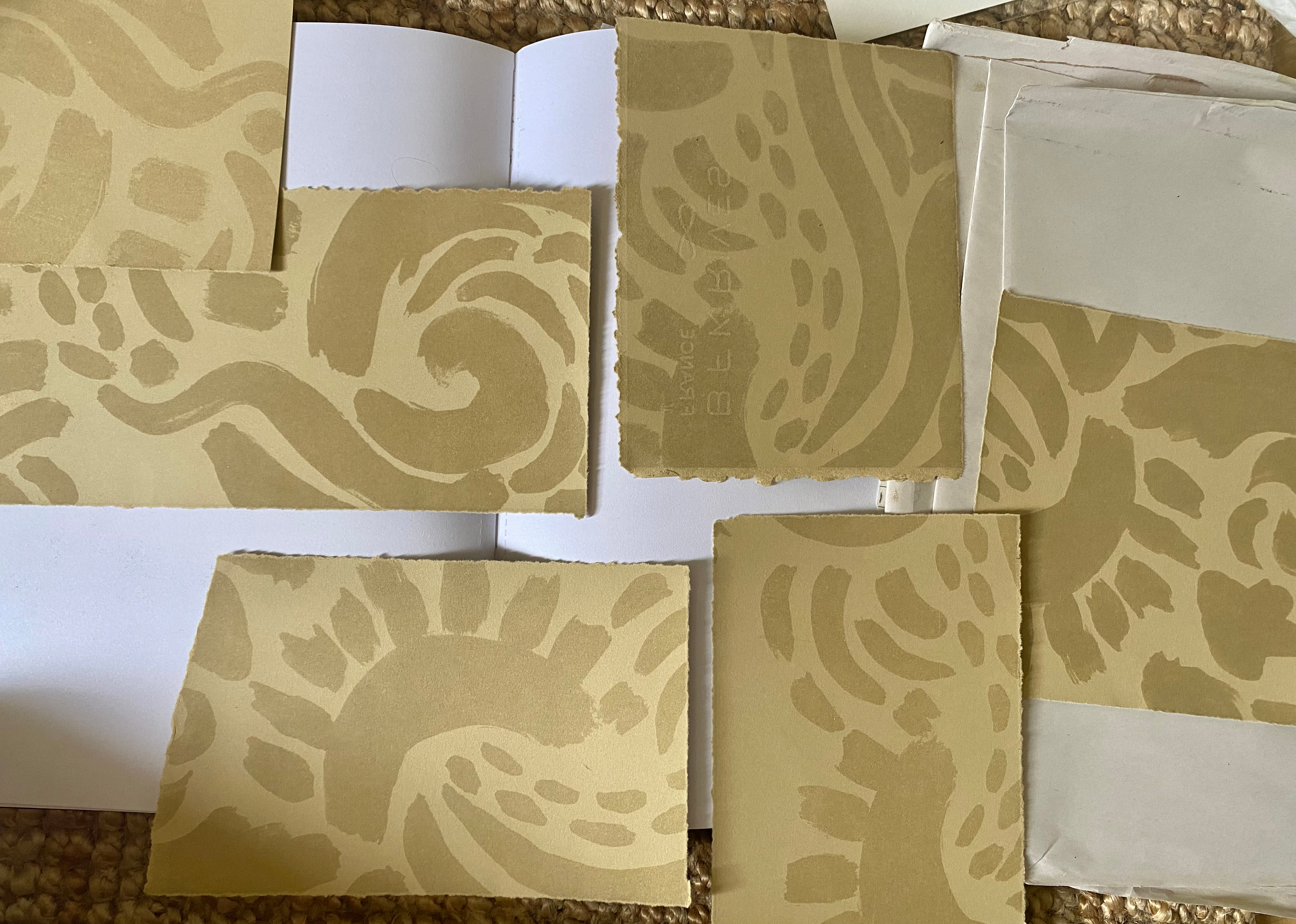 I printed many times on newsprint but also before doing the final print I practiced directly onto scrap bits of the tan paper so I could see exactly how the colour would look. Some of these attempts came out to dark or with not enough blue tint in them but I kept trialling and eventually I got there.