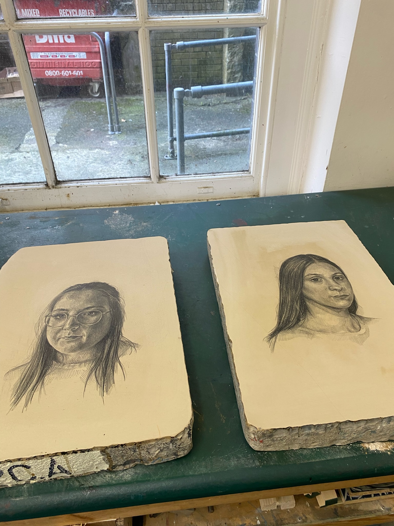 These are the two stones etched and below is the finished print of the portrait on the left. I am really happy with how they have both printed so now need to concentrate on achieving the same with the rest of my portraits.