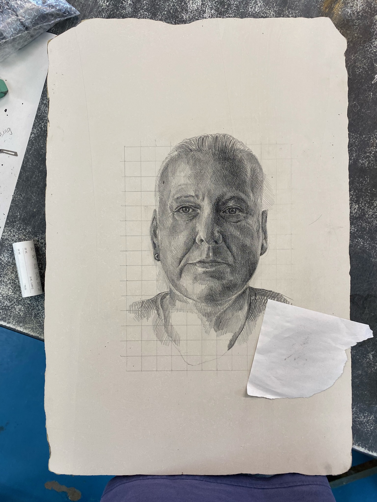 Then onto the portrait of my Dad above, I have struggled a little bit getting the proportions right actually, after taking a step back at the beginning of my drawing I quickly realised that I had drawn the cheeks and side of the face too far out. To correct this I had to scrape what I had drawn back with a razor, focusing on the chin area, cheekbones and sides of the face, this quickly made the portrait more accurate and I could continue with the tone and features.