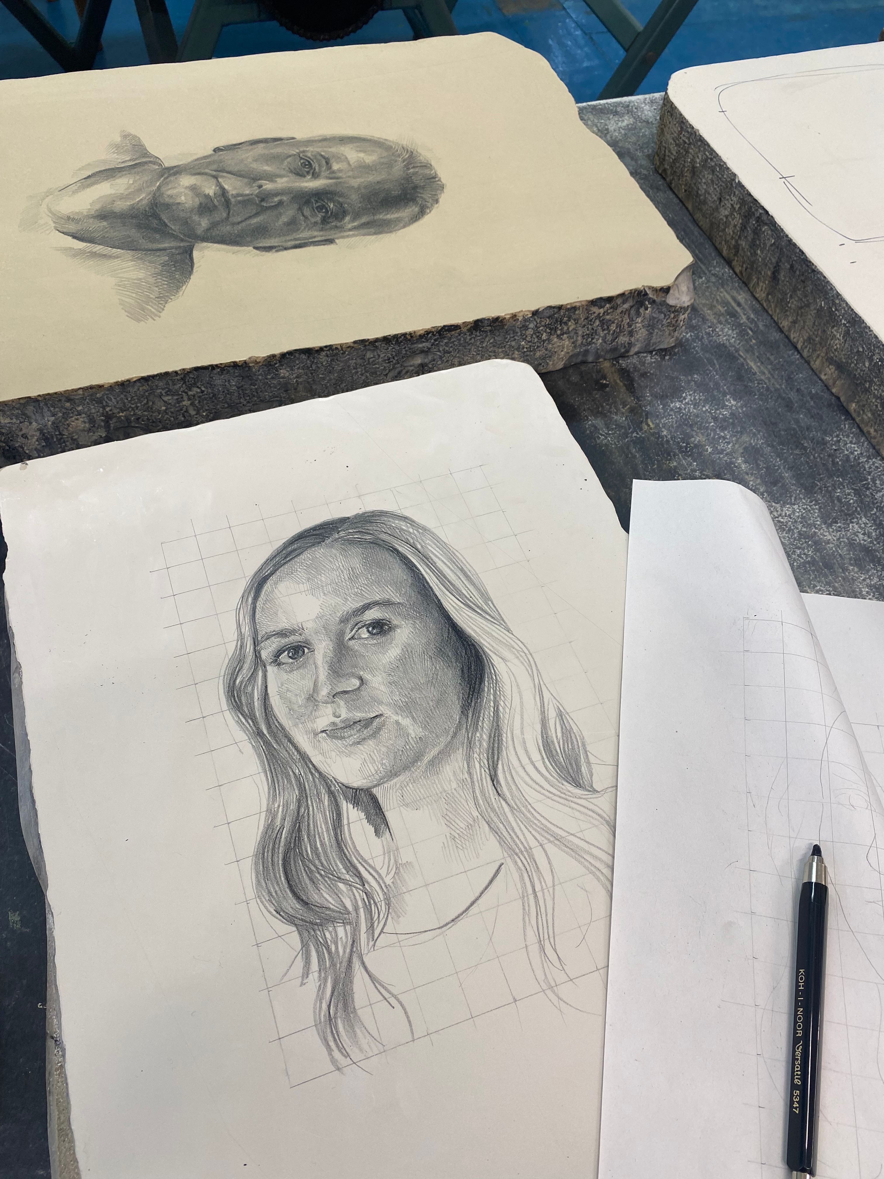 I also began work on this new portrait of my friend half way through the week, starting this felt very natural and really the face formed well from the beginning of the drawing. The longest section was the hair, I didn’t want the hair to be too finely drawn or take away from the face as I wanted it to feel quite loose and natural, so I tried to use quite broad long strokes to achieve this quality.
